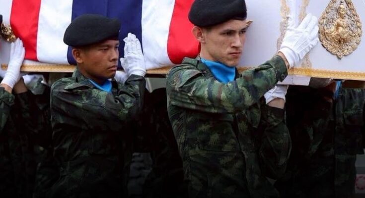 มทบ.25 จัดพิธีส่งศพ 3 ทหารกล้า สละชีวิตปกป้องอธิปไตย เหตุปะทะกัมพูชา