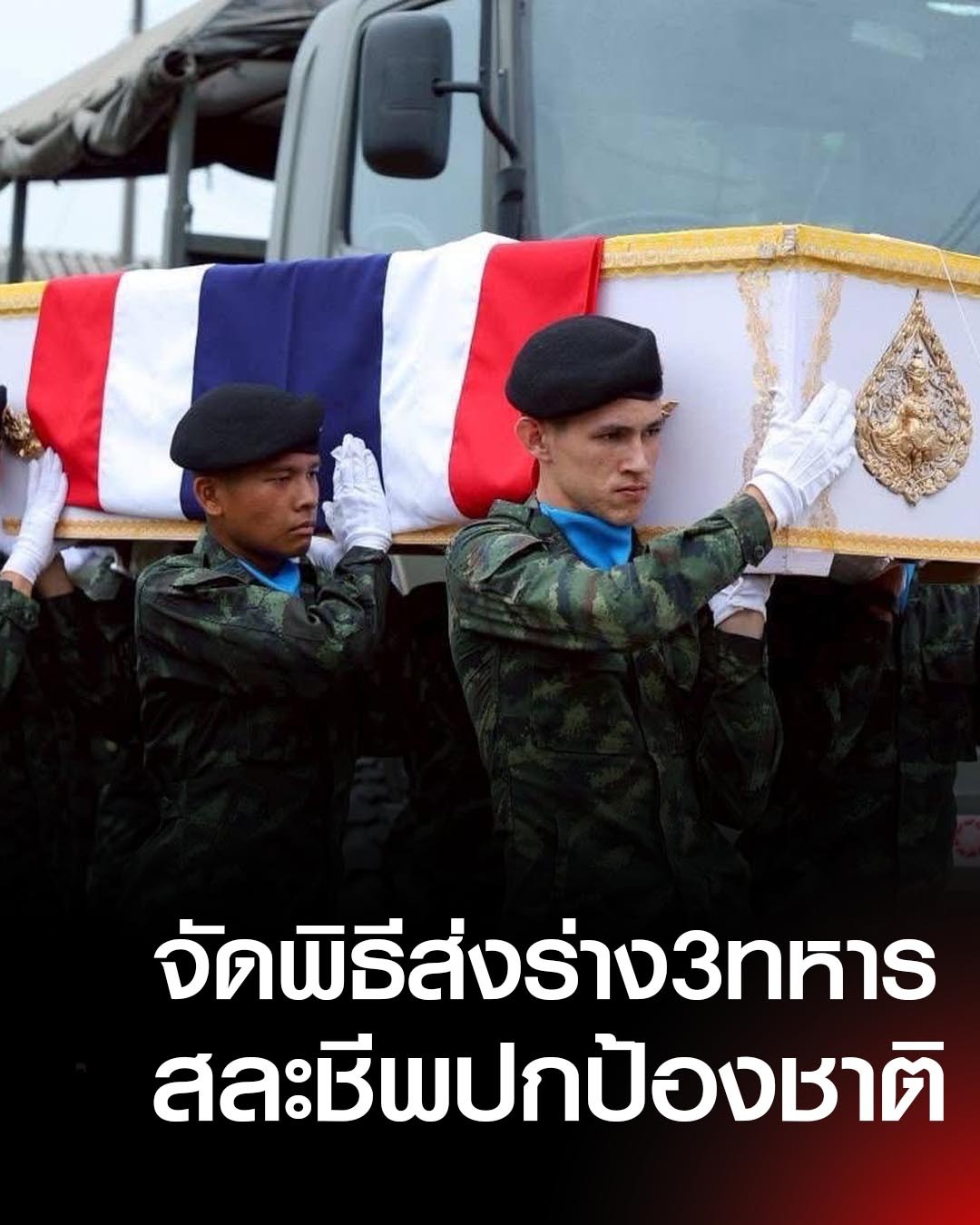 มทบ.25 จัดพิธีส่งศพ 3 ทหารกล้า สละชีวิตปกป้องอธิปไตย เหตุปะทะกัมพูชา กลับภูมิลำเนา ยันจะดูแลครอบครัวและทายาทให้ดีที่สุด