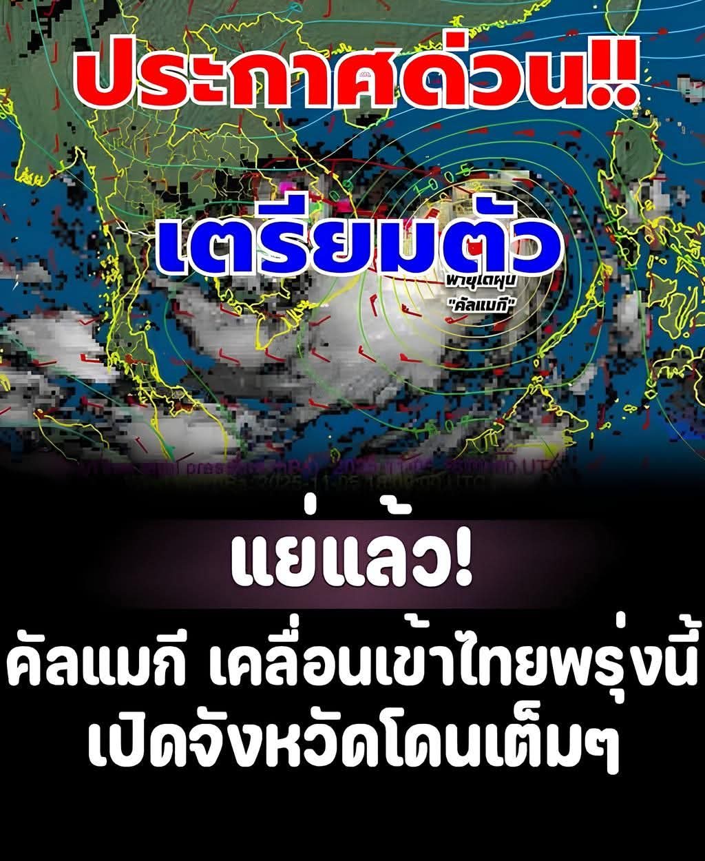 วันที่ 6 พฤศจิกายน 2568 ผู้สื่อข่าวรายงานว่า กรมอุตุนิยมวิทยา ประกาศ เรื่อง พายุ คัลแมกี และฝนตกหนักถึงหนักมากบริเวณประเทศไทย ฉบับที่ 5 (325/2568) ระบุว่า